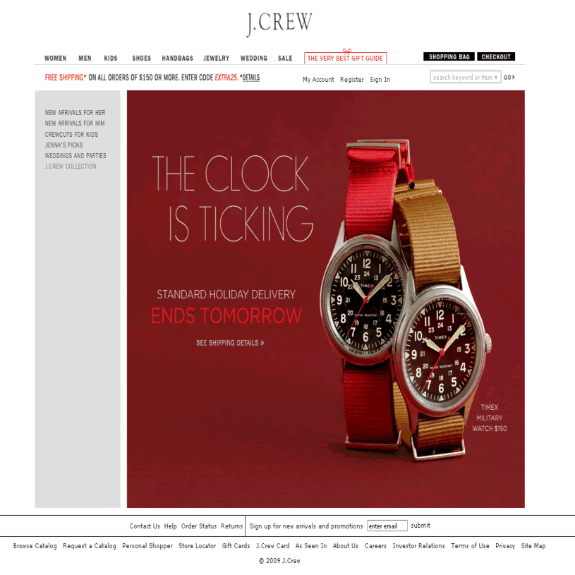- (12/19/2009更新): 美國官網Holiday Sale區商品75折, 折扣碼: EXTRA25, 只到12/20/2009, 11:59pm(美國東岸時間)。同時, 本區商品購滿USD$150, 免美國國內運費。