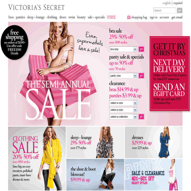 - 這次VC半年清倉主打商品的是他們最招牌的性感女性胸罩, 共有100種款式, 折扣從5折至75折不等, 特價是USD$14.99以上。