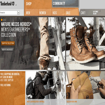 - Timberland美國官網最新折扣碼: GIFTGUIDE10, 在11/08/2010使用本折扣碼, 不限購買金額, 即可獲得8折優惠, 更值得一提的是, 官網折扣區及Outlet區商品也可適用! 同時, 購滿USD$100, 本折扣碼還可再免美國國內運費!不過以下系列商品除外: boot style # 10061, 10025, 15551, Custom Footwear, Timberland Boot Company® Elite Collection, Abington Collection, Gift Cards and any non-Timberland branded items.